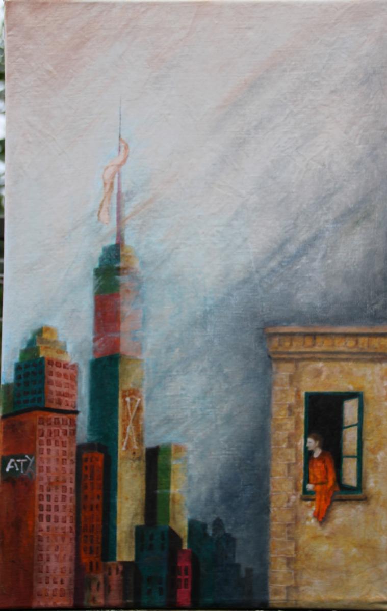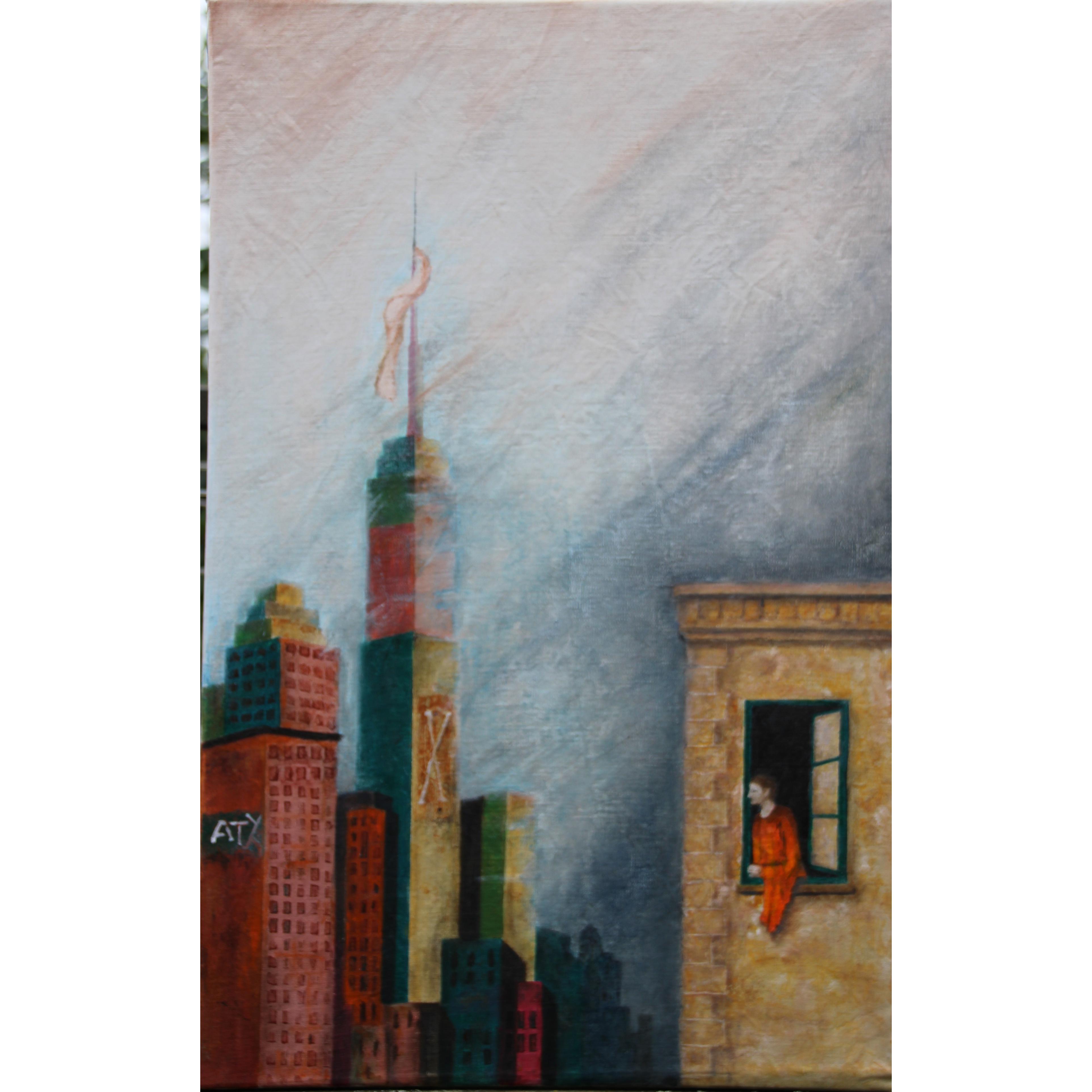 Le architetture segnano il confine tra la permanenza della storia e la precarietà del contemporaneo. La figura non è confinata, ma protetta dalla solidità della storia, evocata dalla classicità dei mattoni e da volumi che richiamano architetture a misura d'uomo.?Da questa posizione sicura, l'uomo assiste al decadimento attuale, rappresentato da una città che si eleva in forme soffocanti e atmosfere metafisiche, perdendo contatto con l’umanità.?È in questo silenzio sospeso che l’uomo acquista consapevolezza: un momento di osservazione lucida che trasforma l'isolamento in testimonianza.
